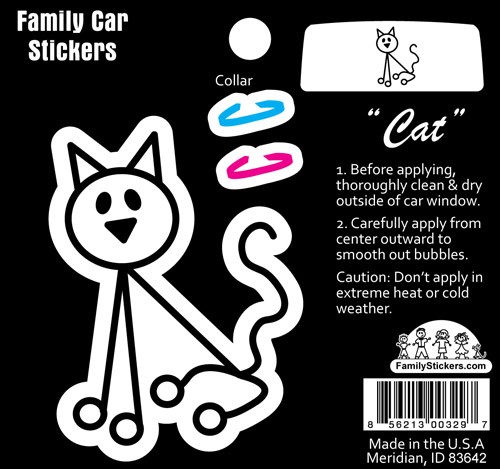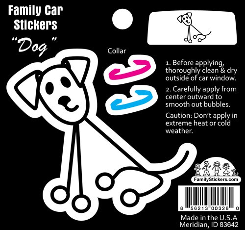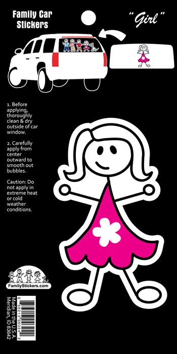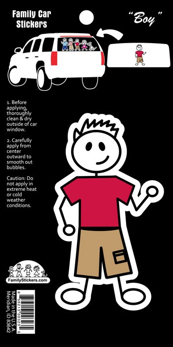 Our Basic Family Stickers Color Accent decals have the same price and ease of ordering as our other Basic Stickers but have a pop of color! Simply fill in the quantity of each character desired in the order form above, click on the “Add to Cart” button and you will be on your way to check out. These decals are printed on white outdoor rated vinyl that will withstand the elements for several years. Decals are applied individually and if you change your mind, removal is clean and simple.