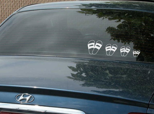 Show your admiration for treading lightly on the earth with these Sandals stickers. Each Sandal sticker is made from custom cut, easy to apply vinyl. The family of Sandals sticker window decals are available in several sizes. Sandals decals are cut from outdoor rated vinyl and will last several years. The Sandal decals were inspired by popular sandals made of leather with adjustable metal buckles.